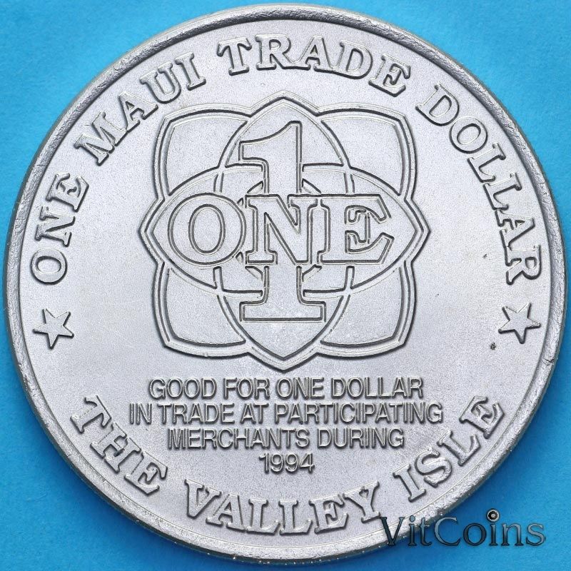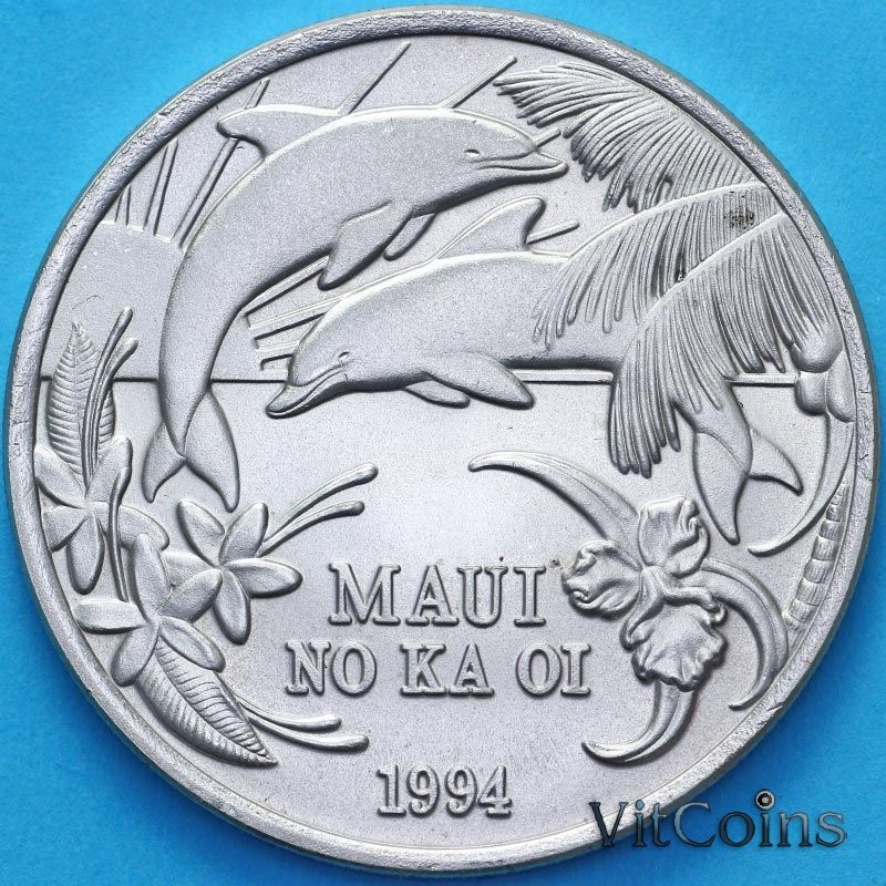 Мауи, Гавайские острова 1 доллар 1994 год. Торговый доллар Мауи. Дельфины.
