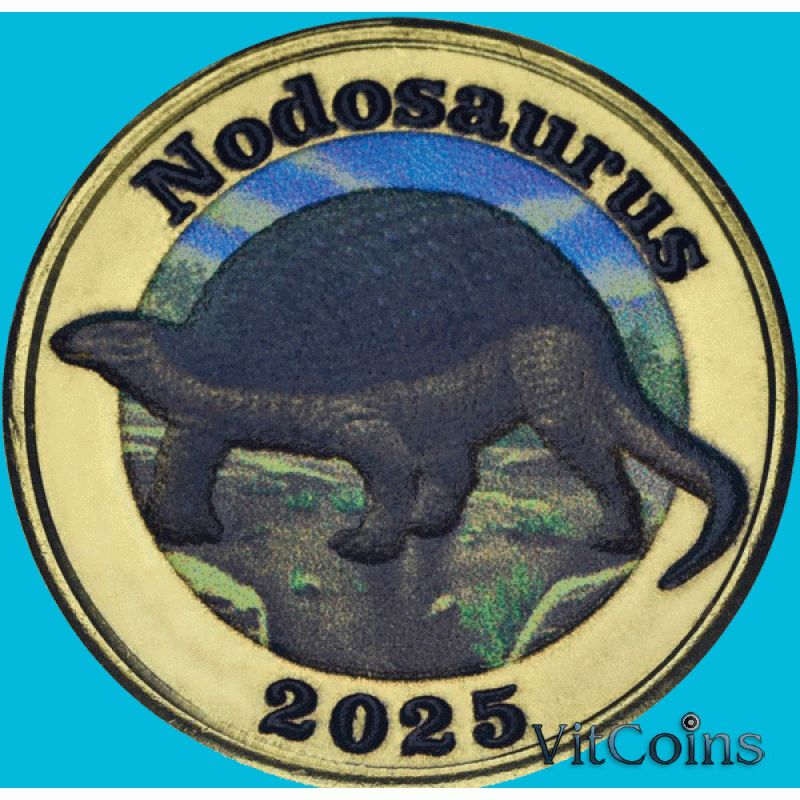 Монета Индонезия, остров Адонара 7 долларов 2025 год. Нодозавр