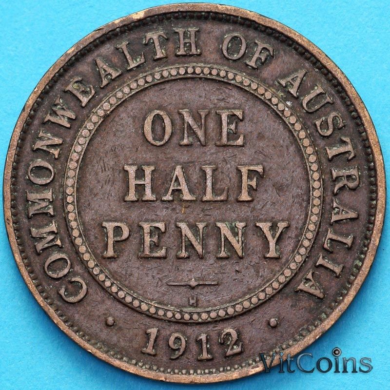 Монета Австралия 1/2 пенни 1912 год.