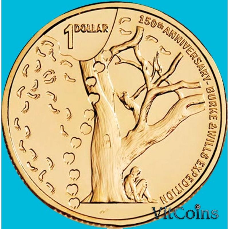 Юбилейная монета Австралия 1 доллар 2010 год. 150 лет экспедиции Бёрка и Уиллса. BU