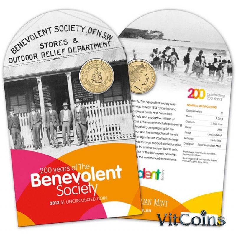 Австралия 1 доллар 2013 год. Юбилейная монета. Благотворительное общество. Буклет