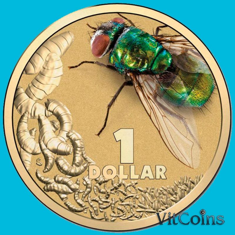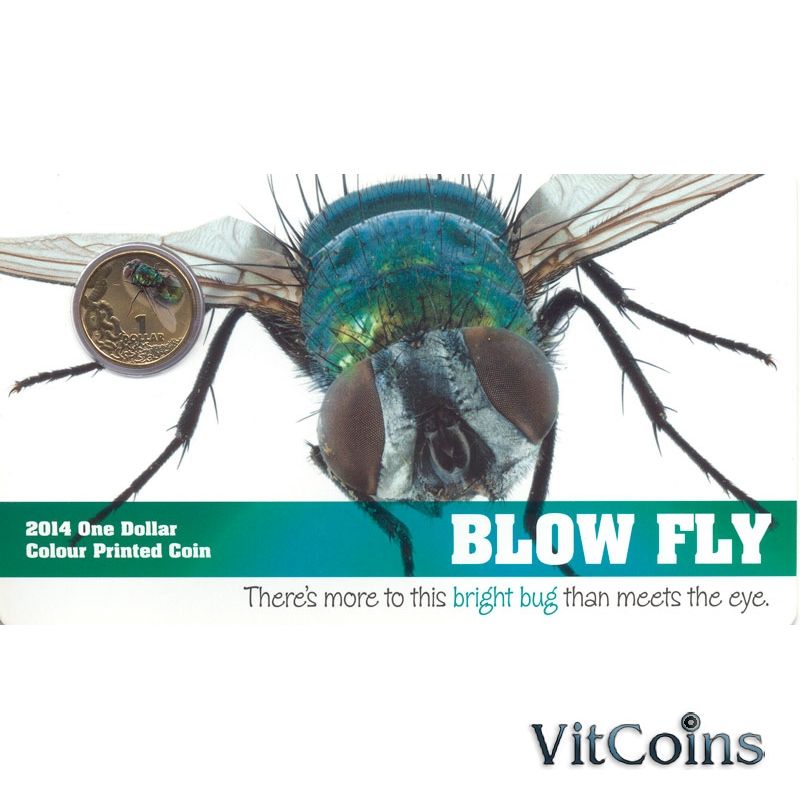 Австралия 1 доллар 2014 год. Юбилейная монета. Серия "Яркие жуки". Мясная муха. Блистер