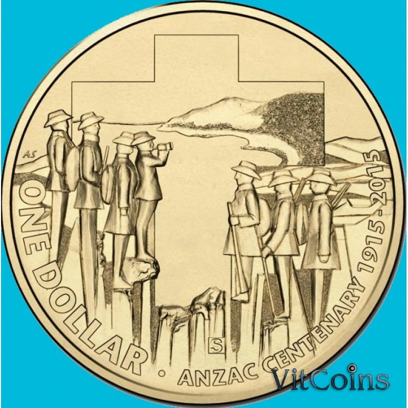 Юбилейная монета Австралия 1 доллар 2015 год. 100 лет Анзак. B. BU