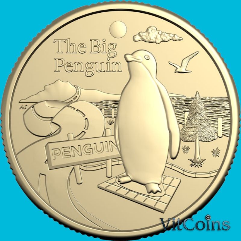 Монета Австралия 1 доллар 2025 год. Большой пингвин