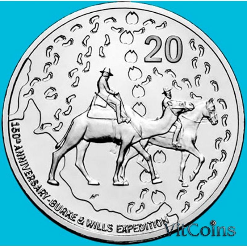Австралия 20 центов 2010 год. Юбилейная монета. 150 лет экспедиции Бёрка и Уиллса