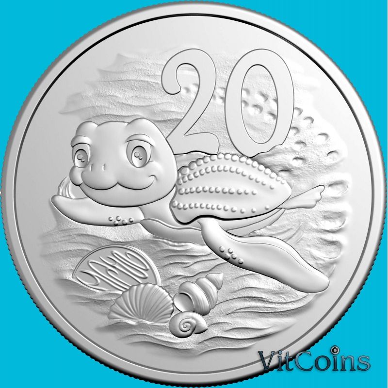 Монета Австралия 20 центов 2025 год. Cute Leatherback Hatchling Turtle