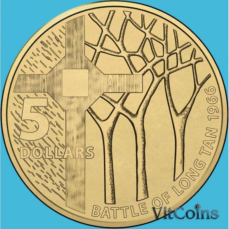 Австралия 5 долларов 2016 год. Юбилейная монета. 50 лет со дня сражения при Лонг-Тане