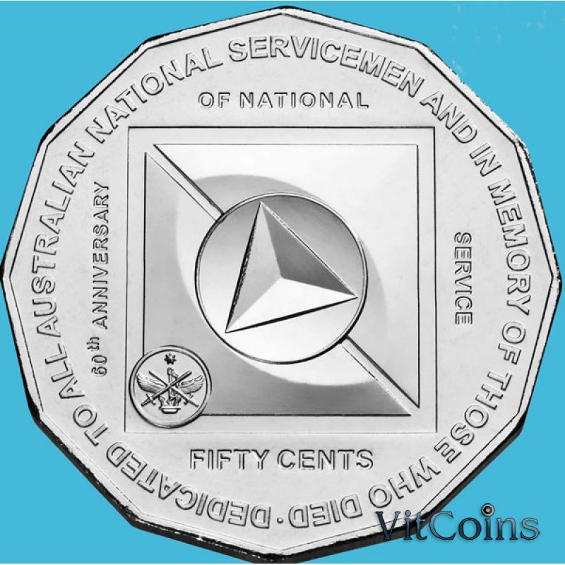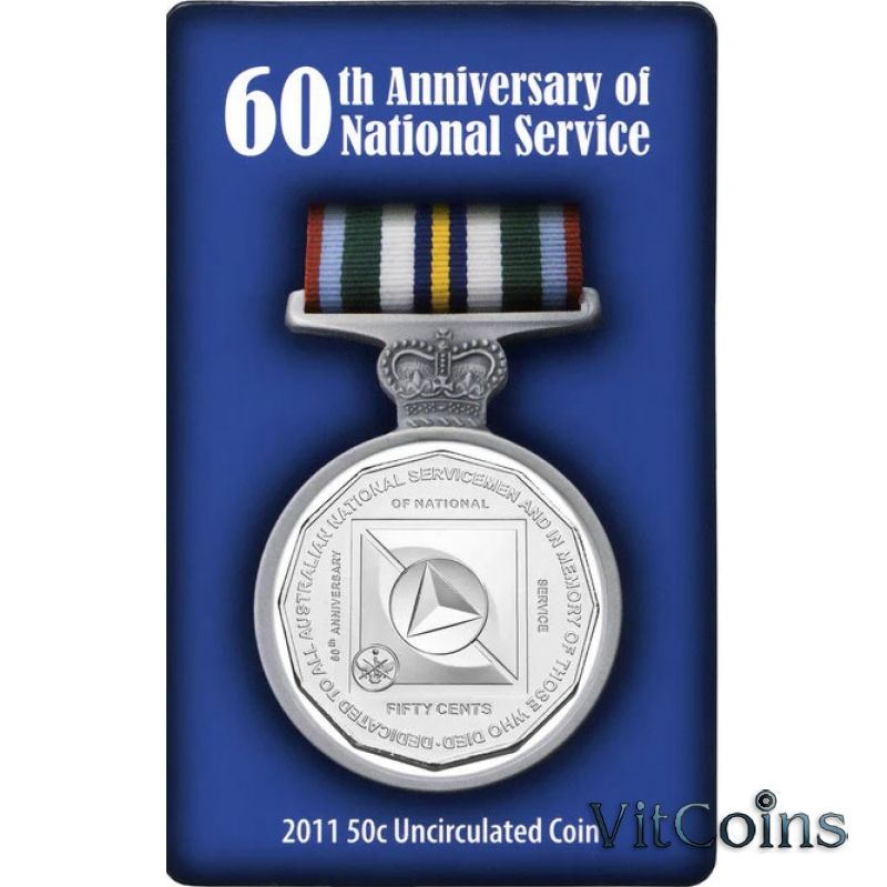 Юбилейная монета Австралия 50 центов 2011 год. 60 лет национальной армии. Блистер