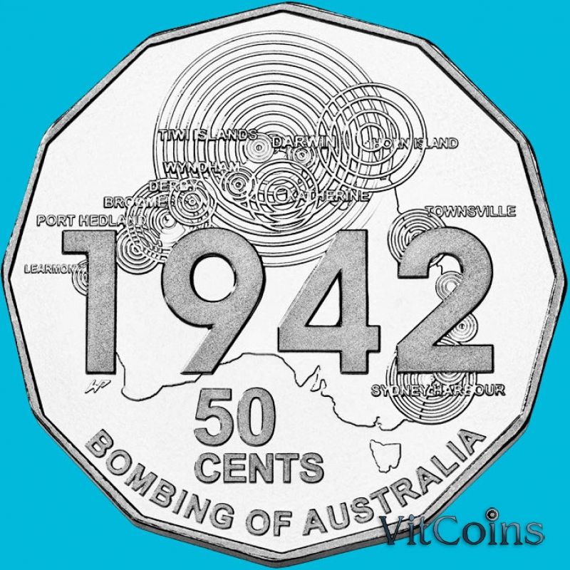 Юбилейная монета Австралия 50 центов 2012 год. 70 лет бомбардировкам Австралии