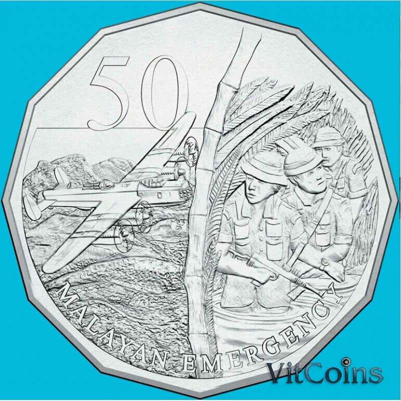 Австралия 50 центов 2016 год. Юбилейная монета. Серия "Австралия в войнах". Война в Малайе