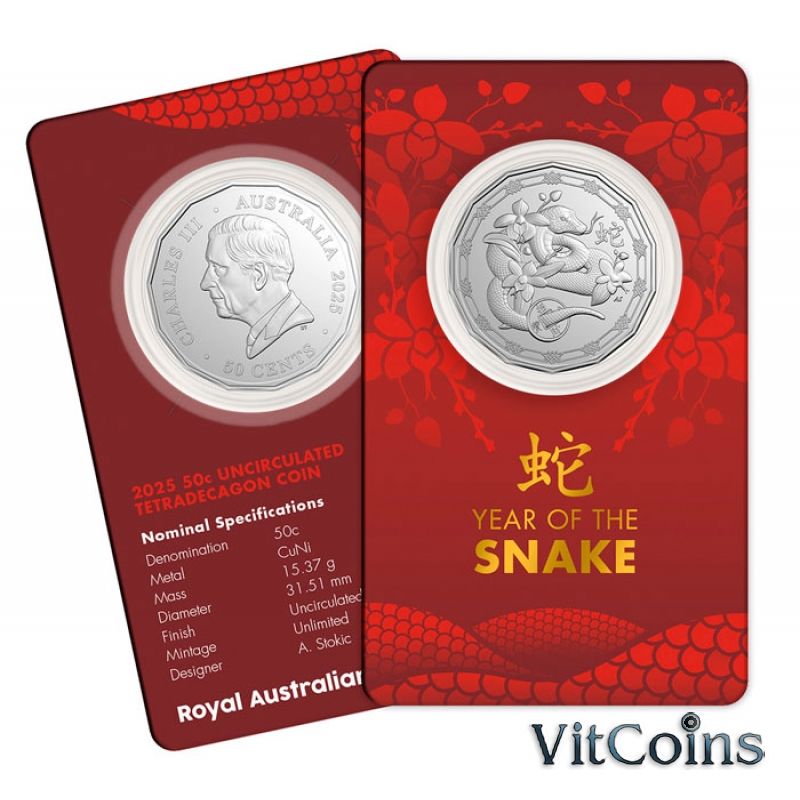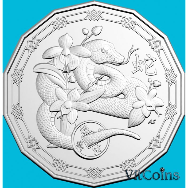 Монета Австралия 50 центов 2025 год. Год змеи. Блистер