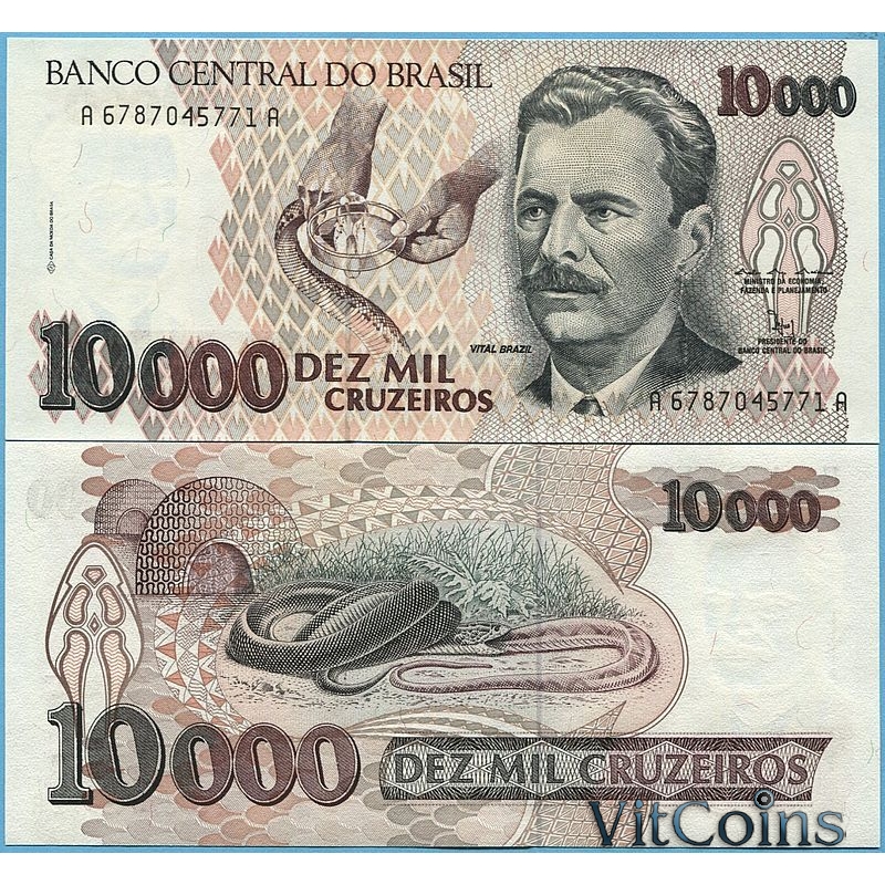 Банкнота Бразилия 10000 крузейро 1992 год.