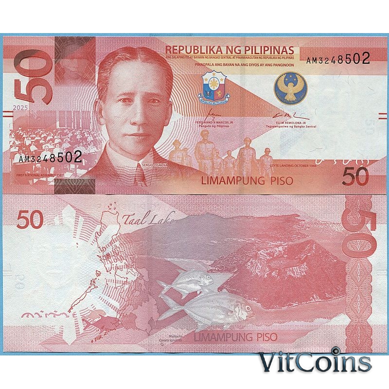 Банкнота Филиппины 50 песо 2025 год. P-231d