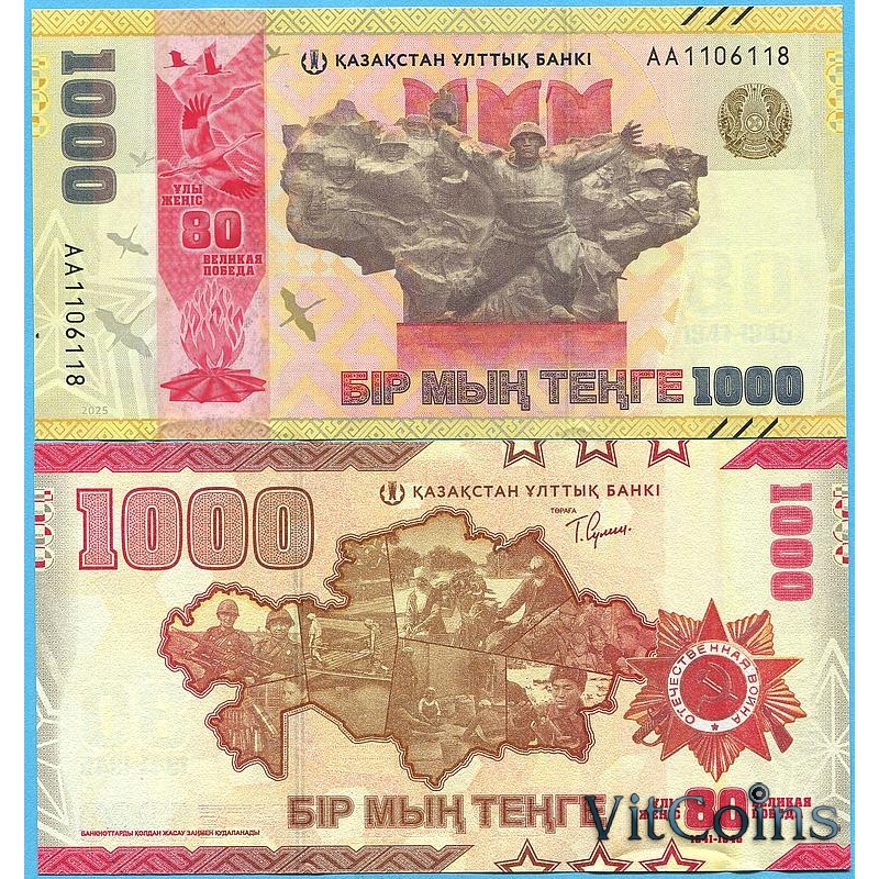 Банкнота Казахстан 1000 тенге 2025 год. 80 лет Победы