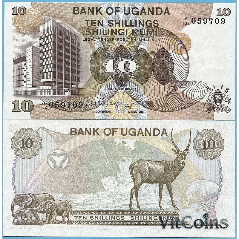 Банкнота Уганда 10 шиллингов 1979 год.