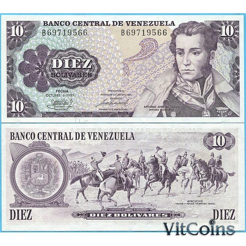 Банкнота Венесуэла 10 боливар 1981 год.