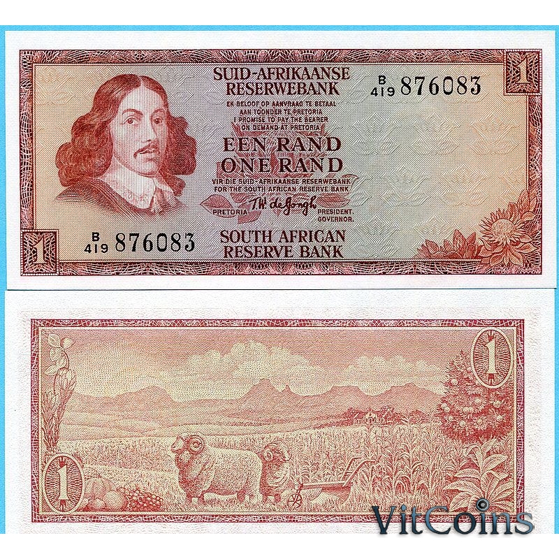 Банкнота Южная Африка 1 ранд 1967-1972 год.
