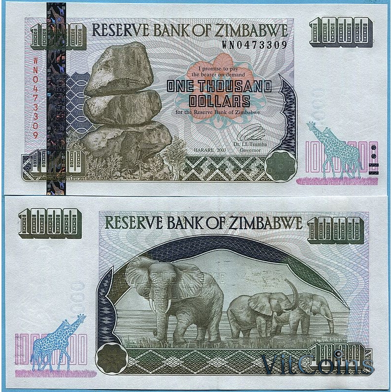 Банкнота Зимбабве 1000 долларов 2003 год.