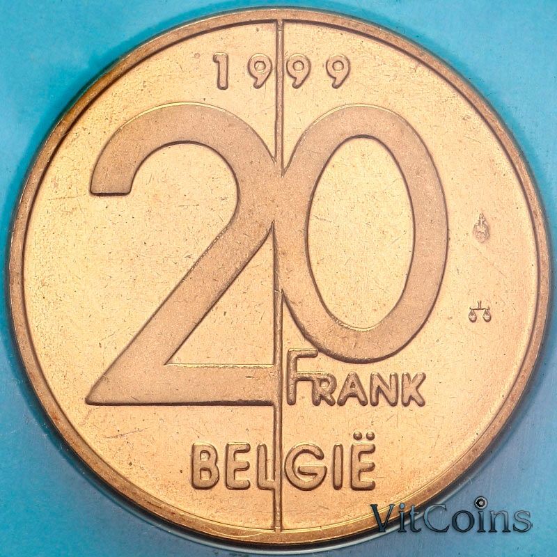 Монета Бельгия 20 франков 1999 год. Фламандский вариант.Король Альберт II