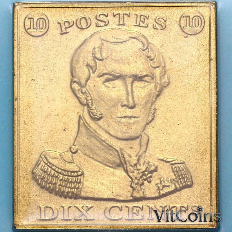 Бельгия, жетон монетного двора 1999 год. Почтовая марка 10 сантим 1849 года