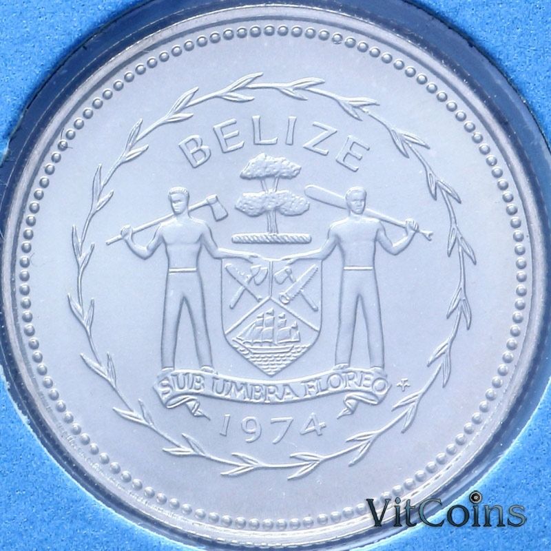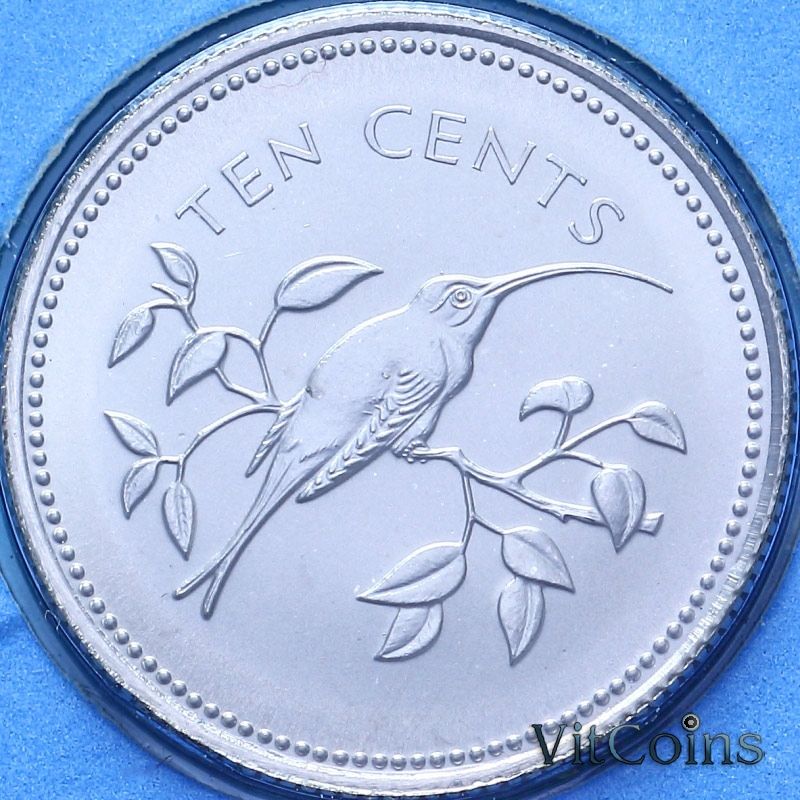 Монета Белиз 10 центов 1974 год. Длиннохвостый отшельник Пруф