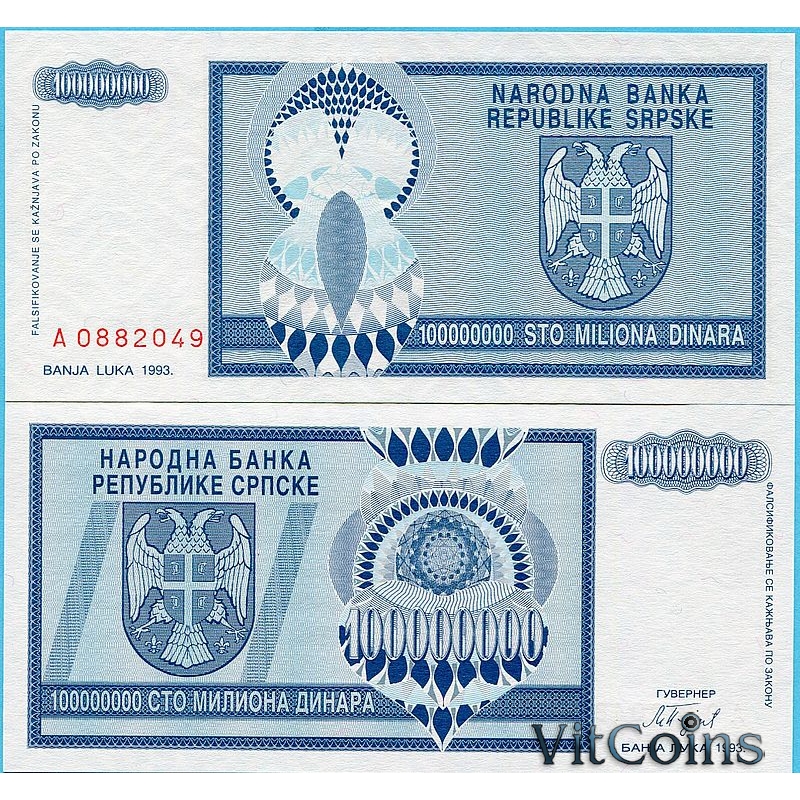Банкнота Босния и Герцеговина 100000000 динар 1993 год.
