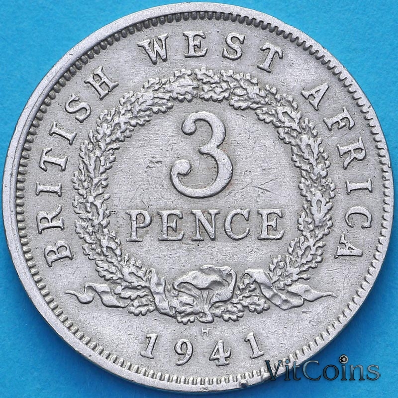 Монета Британская Западная Африка 3 пенса 1941 год. Н