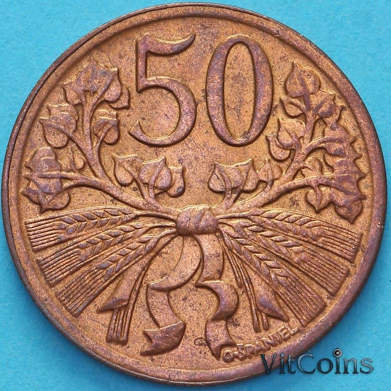 Монета Чехословакия 50 геллеров 1947 год.