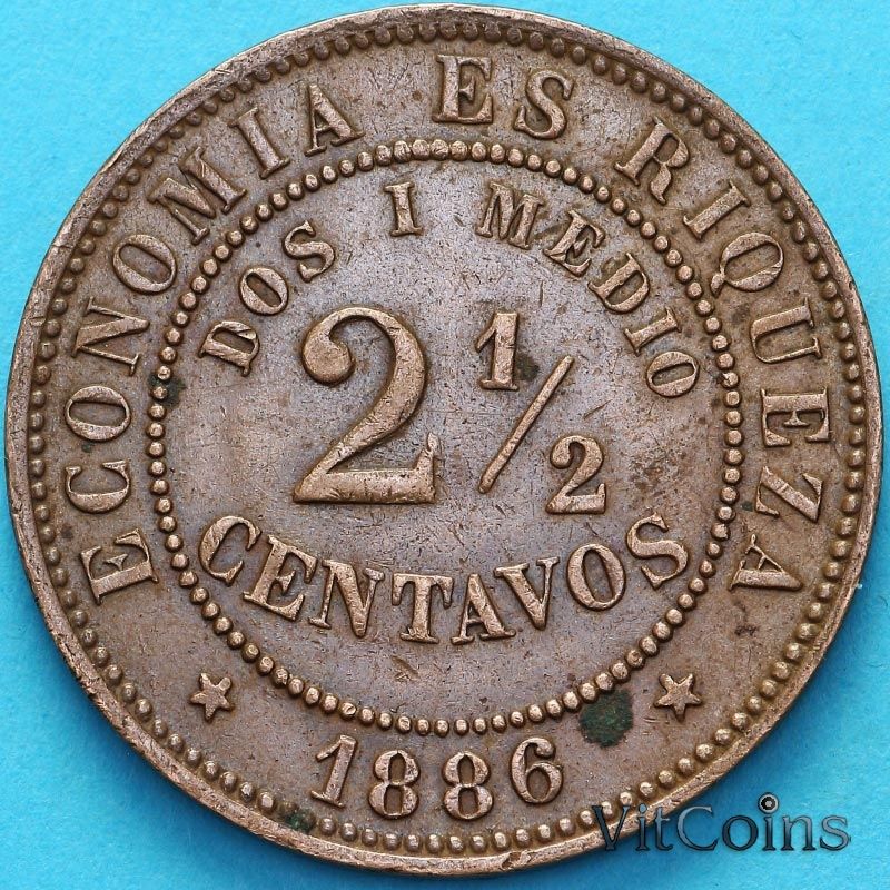 Монета Чили 2,5 сентаво 1886 год.