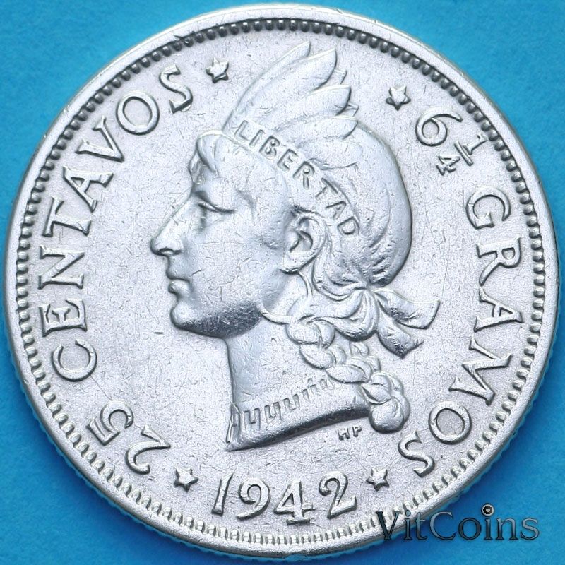 Доминиканская Республика 25 сентаво 1942 год.