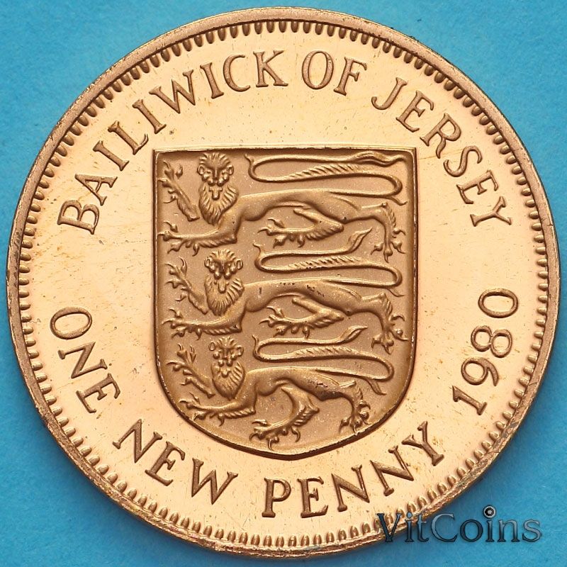 Монета Джерси 1 новый пенни 1980 год. Пруф