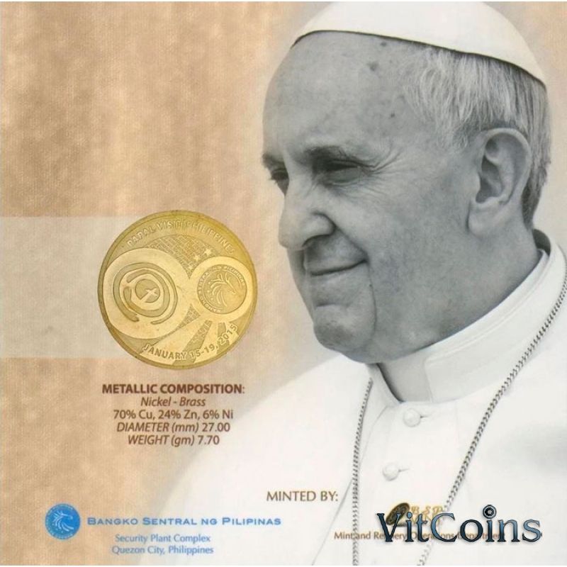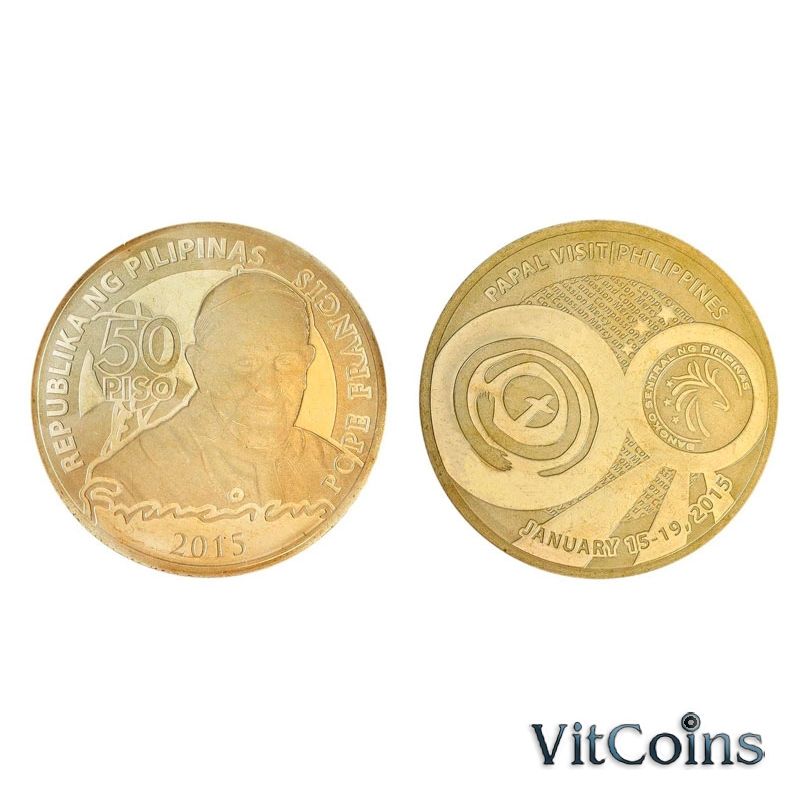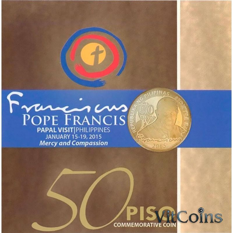 Монета Филиппины 50 песо 2015 год. Визит папы римского Франциска. Буклет