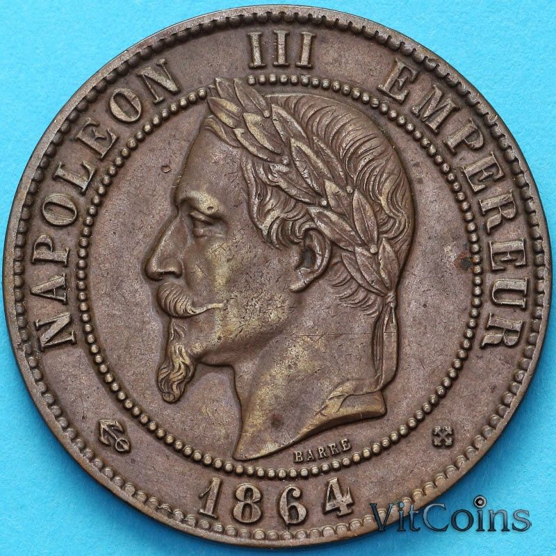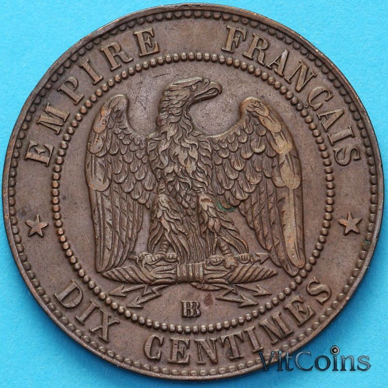 Император Наполеон III (1852-1870). Монета отчеканена на монетном дворе Страсбрга (Франция) - ВВ.