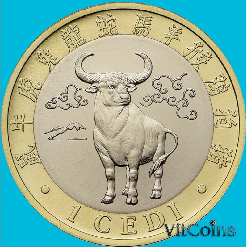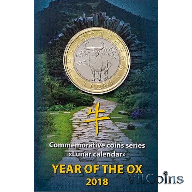 Монета Гана 1 седи 2018 год. Лунный календарь. Год быка. Буклет
