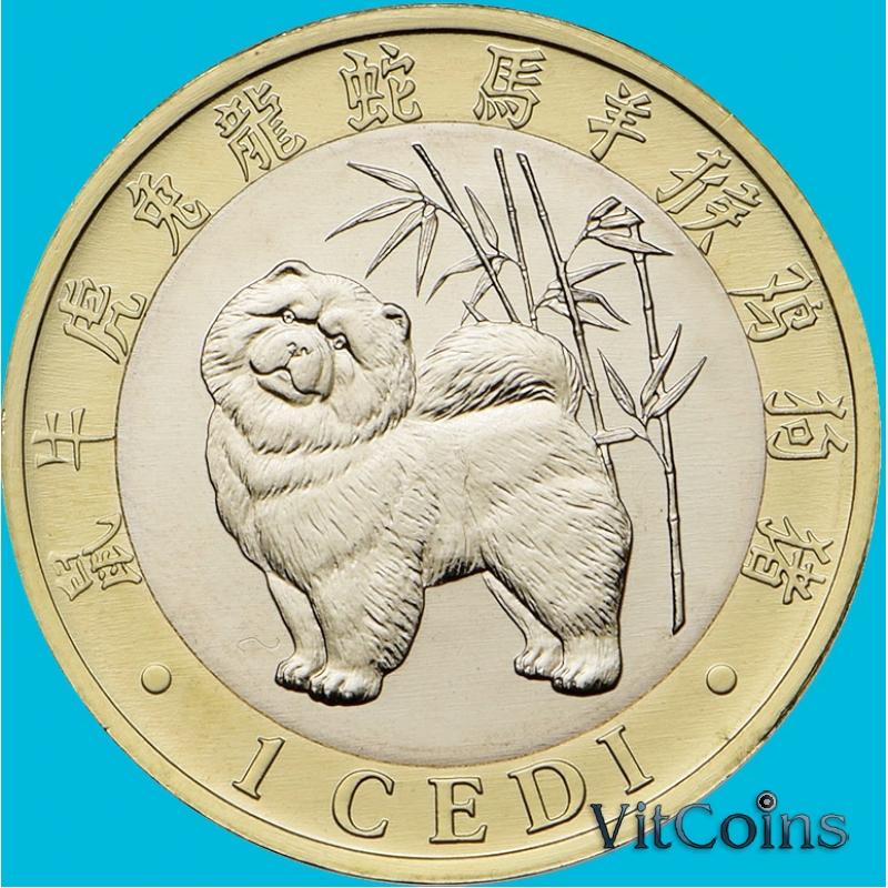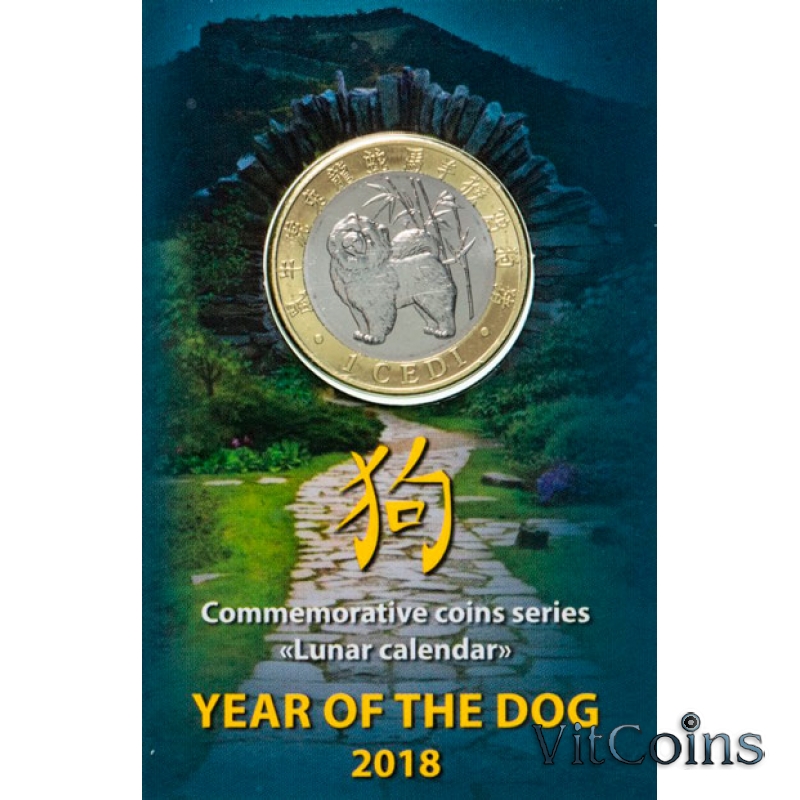 Монета Гана 1 седи 2018 год. Лунный календарь. Год собаки. Буклет
