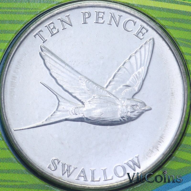 Монета Гернси 10 пенсов 2021 год. Ласточка. Блистер
