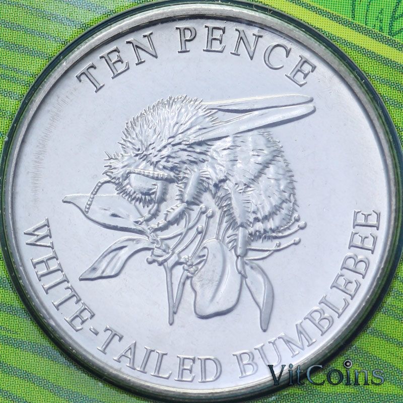 • Монета Гернси 10 пенсов 2021 год. Белохвостый шмель. Блистер