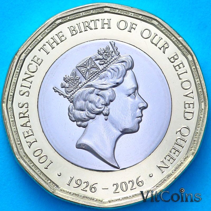 Юбилейная монета Гибралтар 1 фунт 2026 год. 100 лет со дня рождения Королевы Елизаветы II