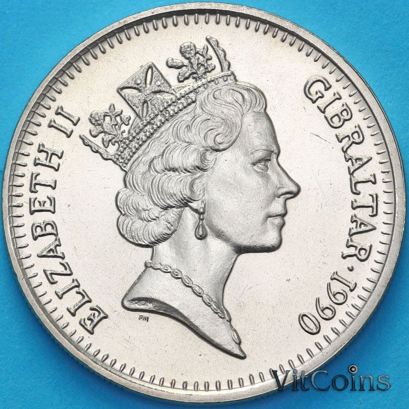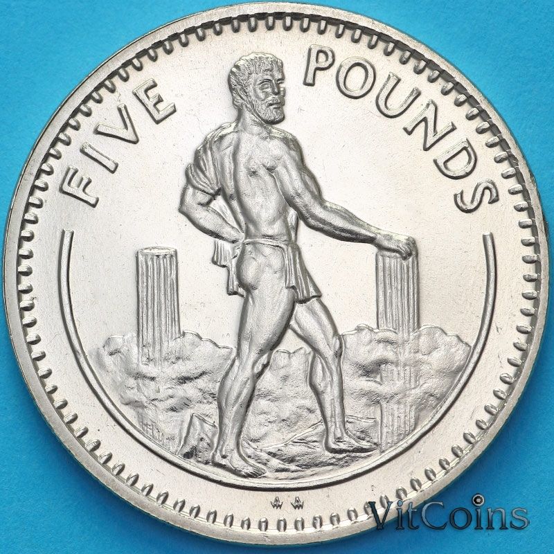 Монета Гибралтар 5 фунтов 1990 год. Геркулес