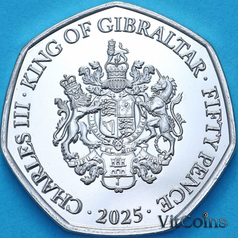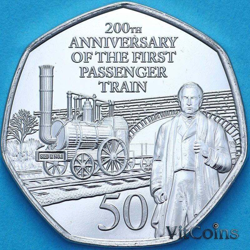 Гибралтар 50 пенсов 2025 год. Юбилейная монета. 200 лет первому пассажирскому поезду