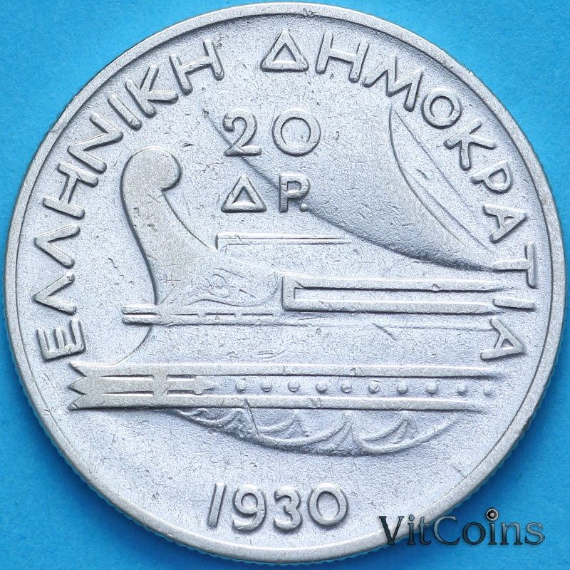 Монета Греция 20 драхм 1930 год. Вторая Республика (1924 - 1935)