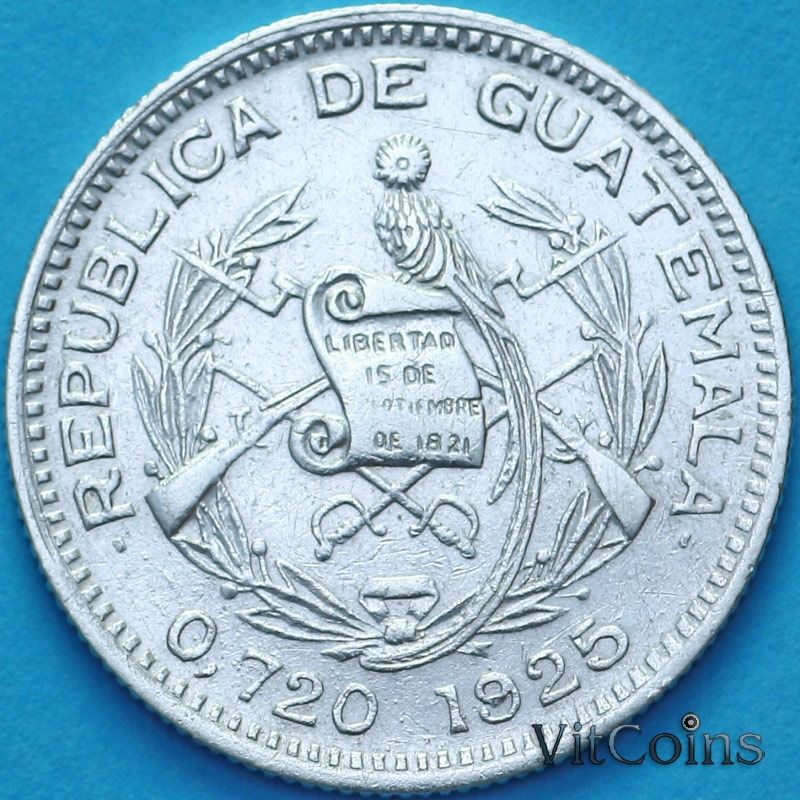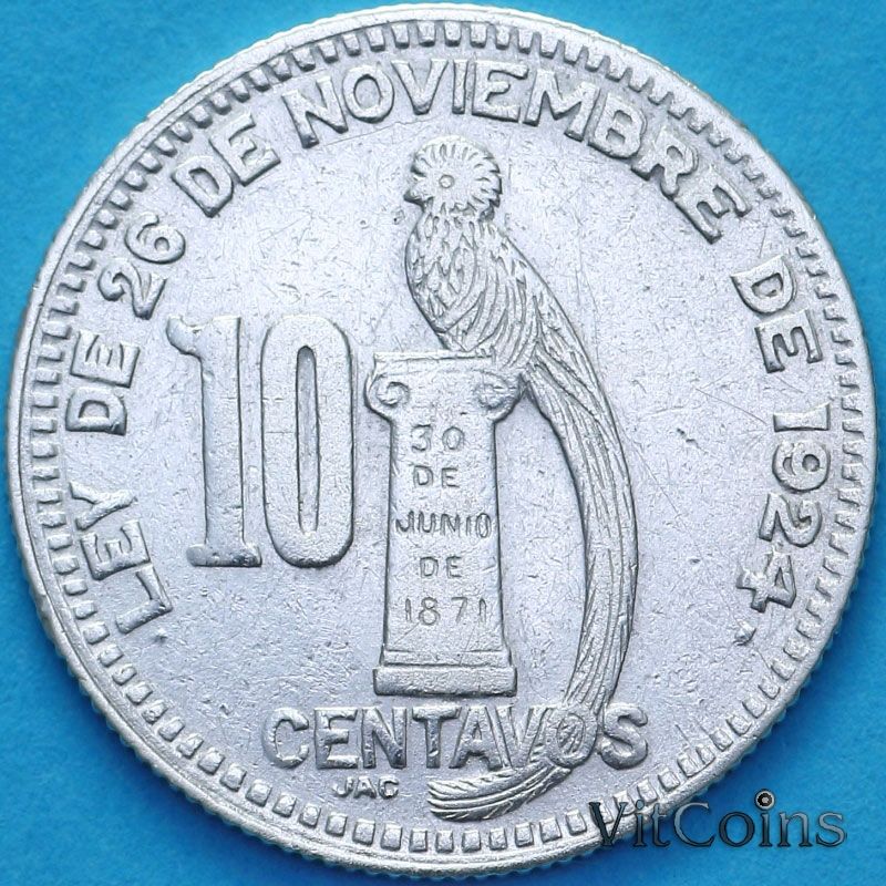 Монета Гватемала 10 сентаво 1925 год.