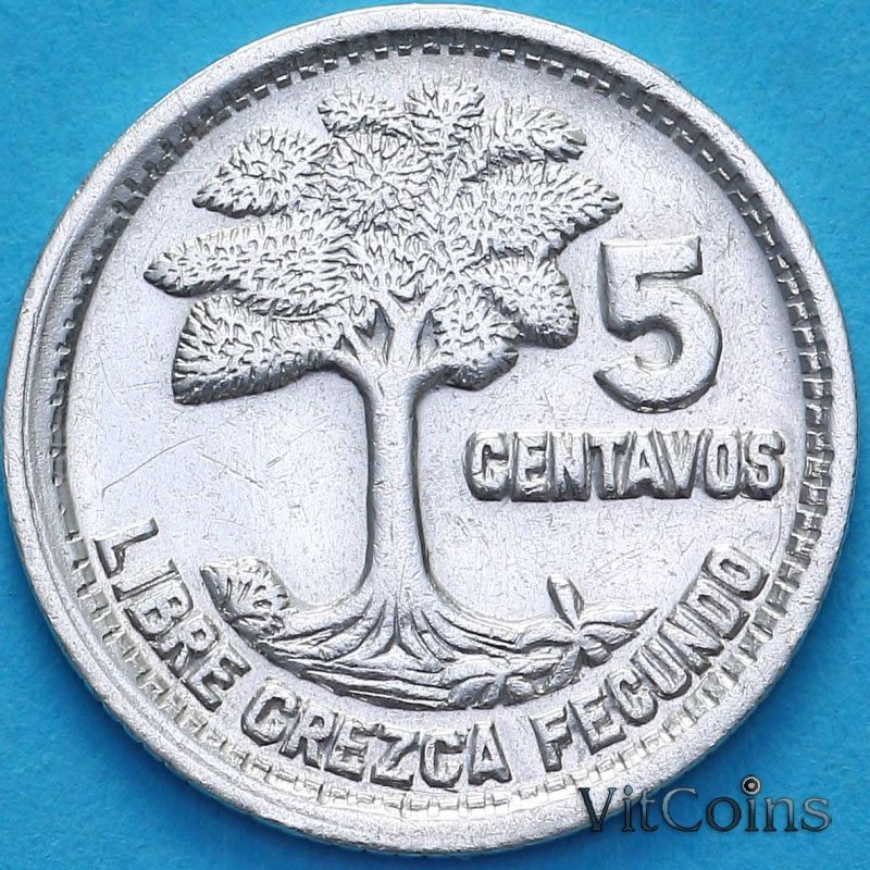 Монета Гватемала 5 сентаво 1955 год.