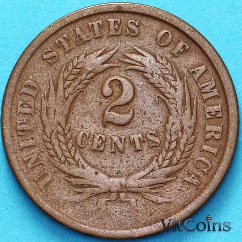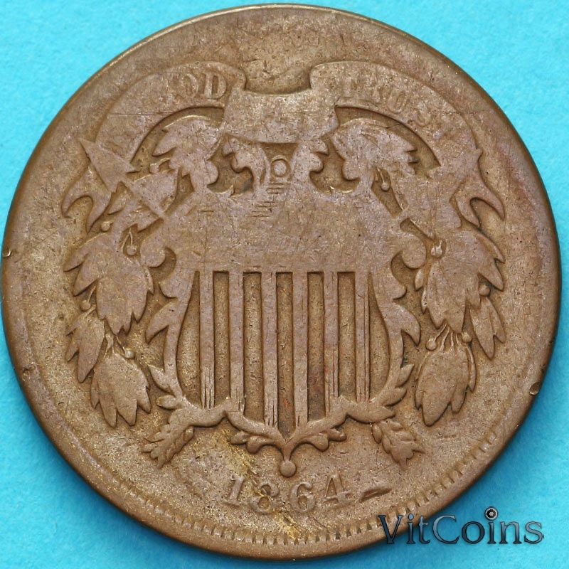 Монета США 2 цента 1864 год.