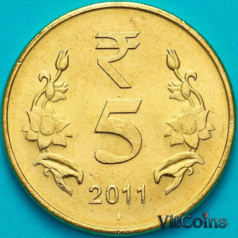 Монета Индия 5 рупий 2011 год. Монетный двор Мумбаи.