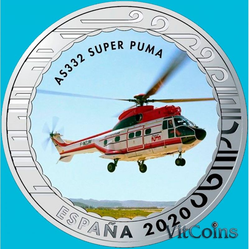 Монета Испания 1,5 евро 2020 год. AS332 Super Puma