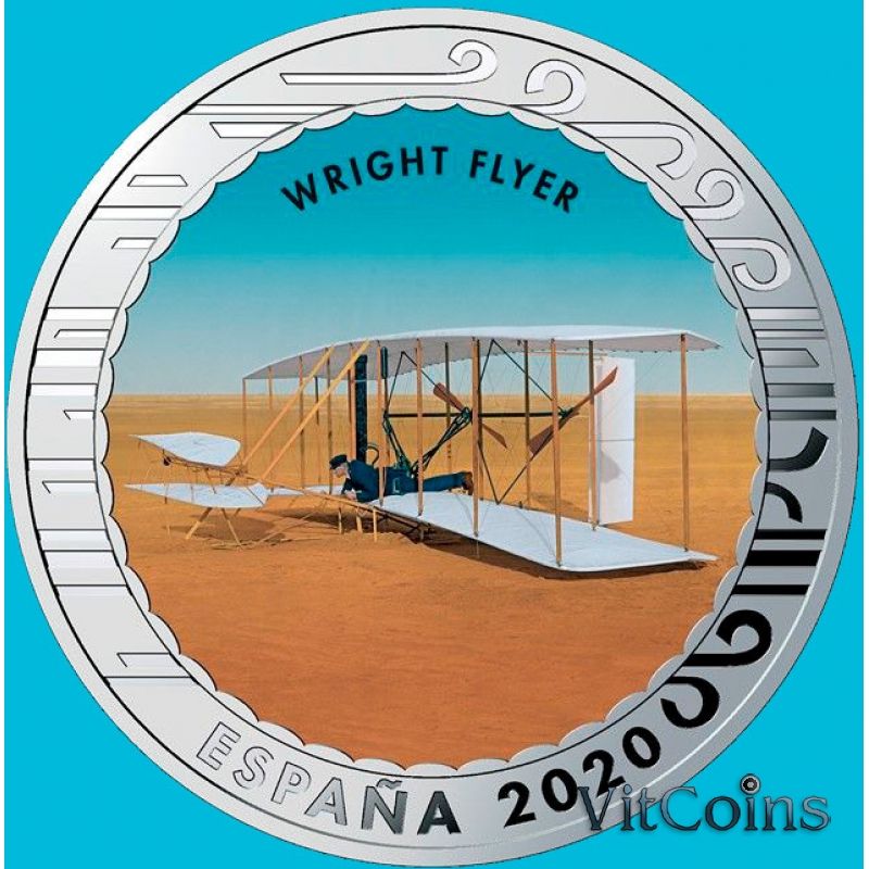 Монета Испания 1,5 евро 2020 год. Wright Flyer