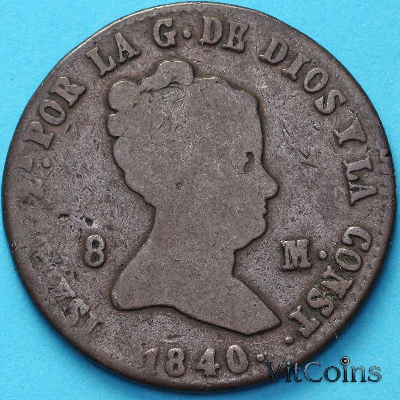 Монета Испания 8 мараведи 1840 год. Изабелла II
