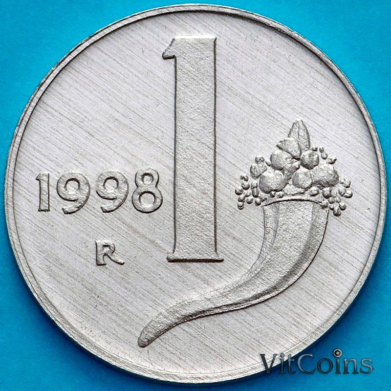 Монета Италия 1 лира 1998 год. Рог изобилия.