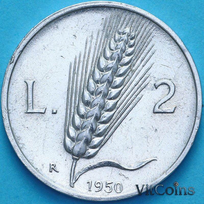 Монета Италия 2 лиры 1950 год. Пахарь. Виктор Эммануил III.